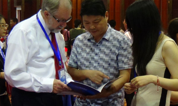 復(fù)合保溫砌塊的12大優(yōu)勢引起了國外專家的濃厚興趣,圖為美國建筑節(jié)能研究專家羅伯特先生,特意向謝總請教并表達(dá)了技術(shù)合作愿望